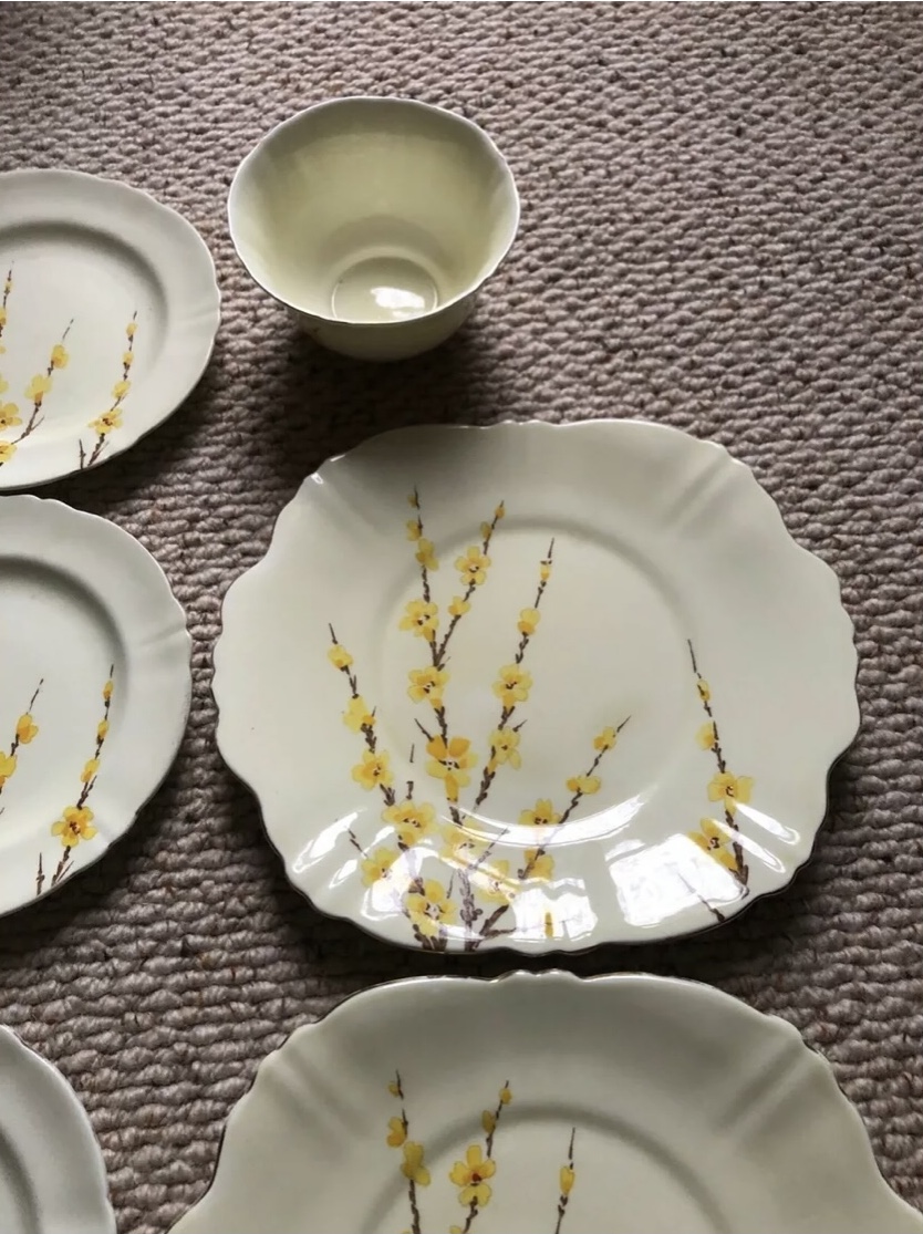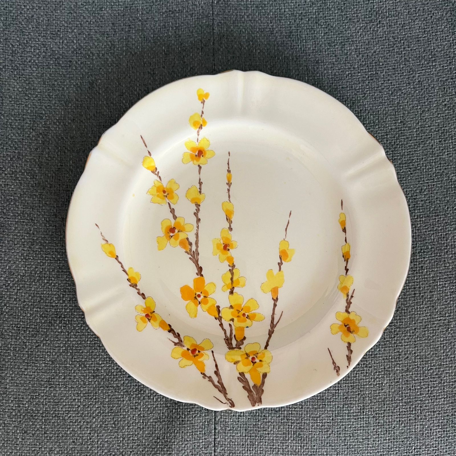 Тарелка «Форзиция» 19 см, 1930 г, Англия. Стаффордширский фарфор, в наличии набор из 9 тарелок, чаши 15 см и 2 блюда 38 см